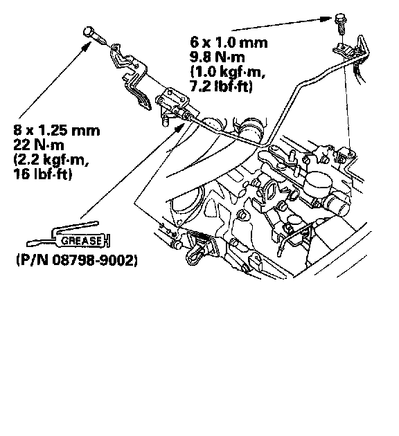 36. Apply super high tamp urea grease (P/N 08798-9002) to the end of the cylinder rod. Install the slave cylinder. Take care not to bend the clutch line.