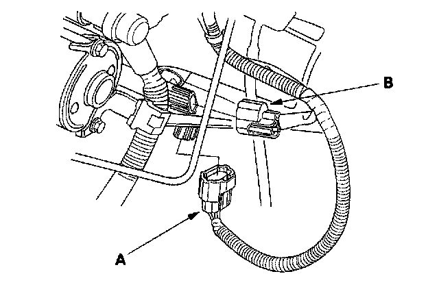 42. Connect the output shaft (countershaft) speed sensor connector (A) and input shaft (mainshaft) speed sensor connector (B).