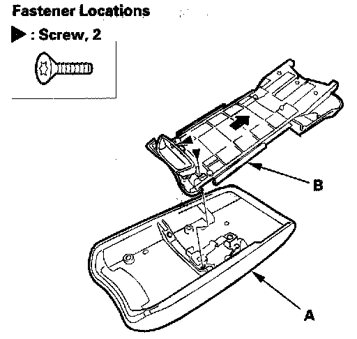 4. Slide the armrest (A) all the way forward, using a T15 Torx bit, remove the screws, then remove the armrest backbone (B).