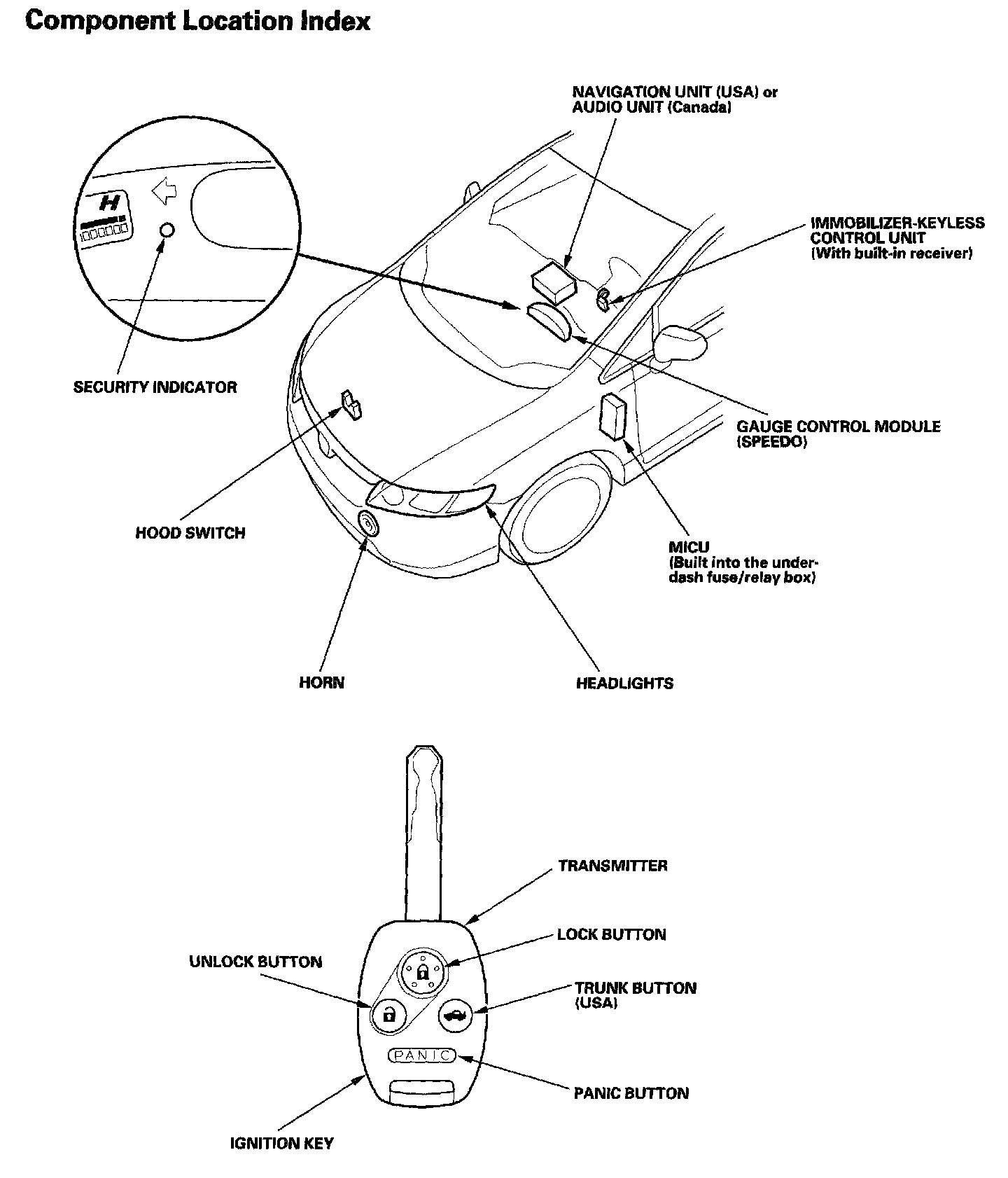 Keyless/Power Door Locks/Security System - Component Location Index: