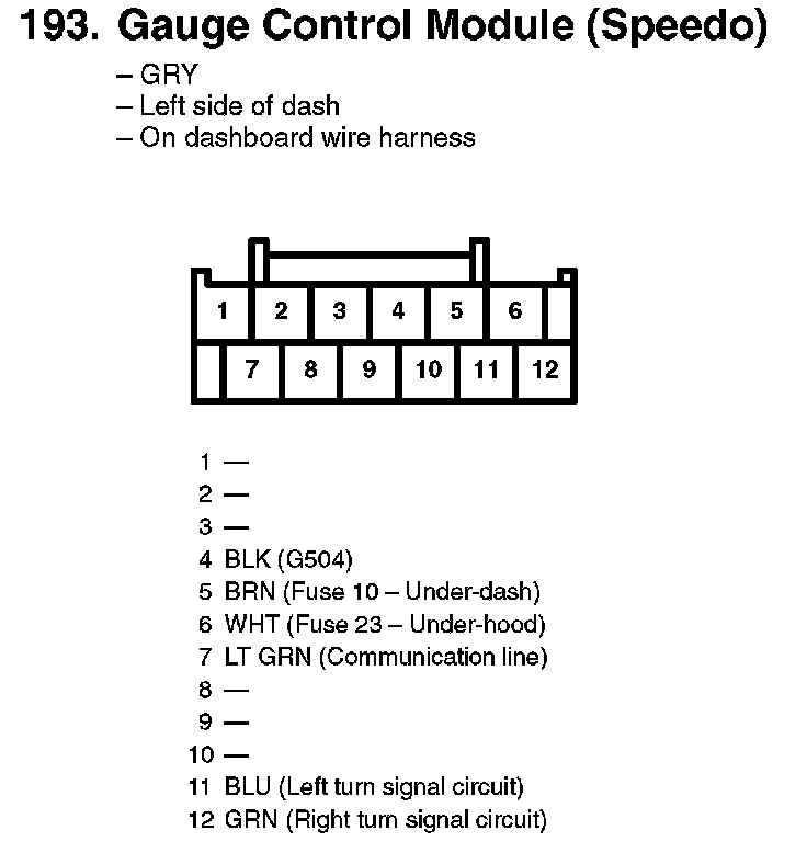 193. Gauge Control Module (Speedo):