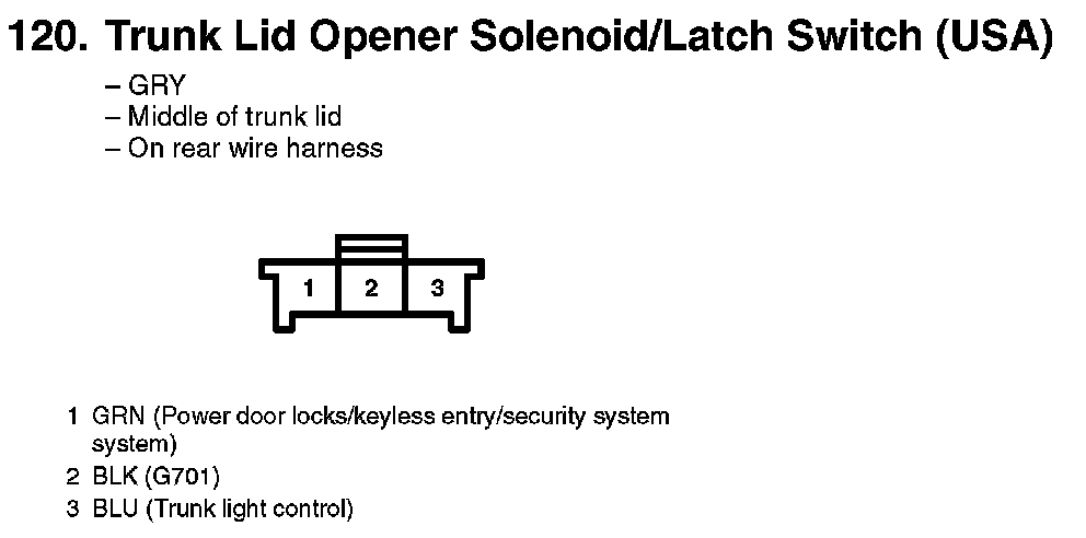 120. Trunk Lid Opener Solenoid/Latch Switch (USA):