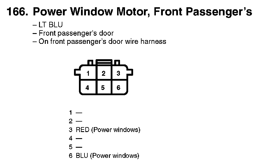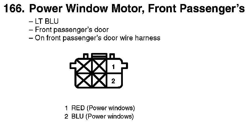 166. Power Window Motor, Front Passenger's:
