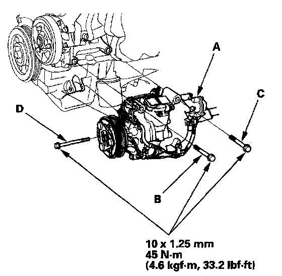 15. Install the A/C compressor in the reverse order of removal, and note these items: