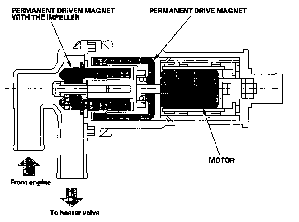 A 12 V auxiliary electric water pump is used to circulate coolant to maintain heater performance during idle stop.