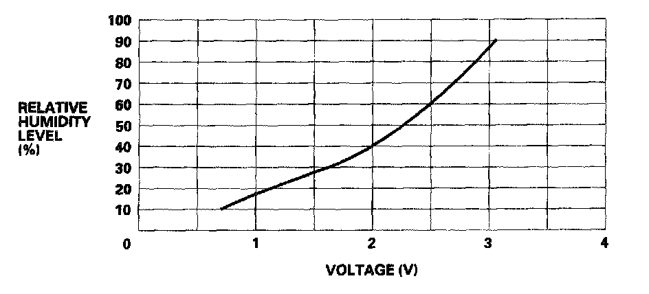 The resistance of the humidity sensor changes by the adsorption and the evaporation of moisture. The resistance change of humidity sensor changes the output voltage.