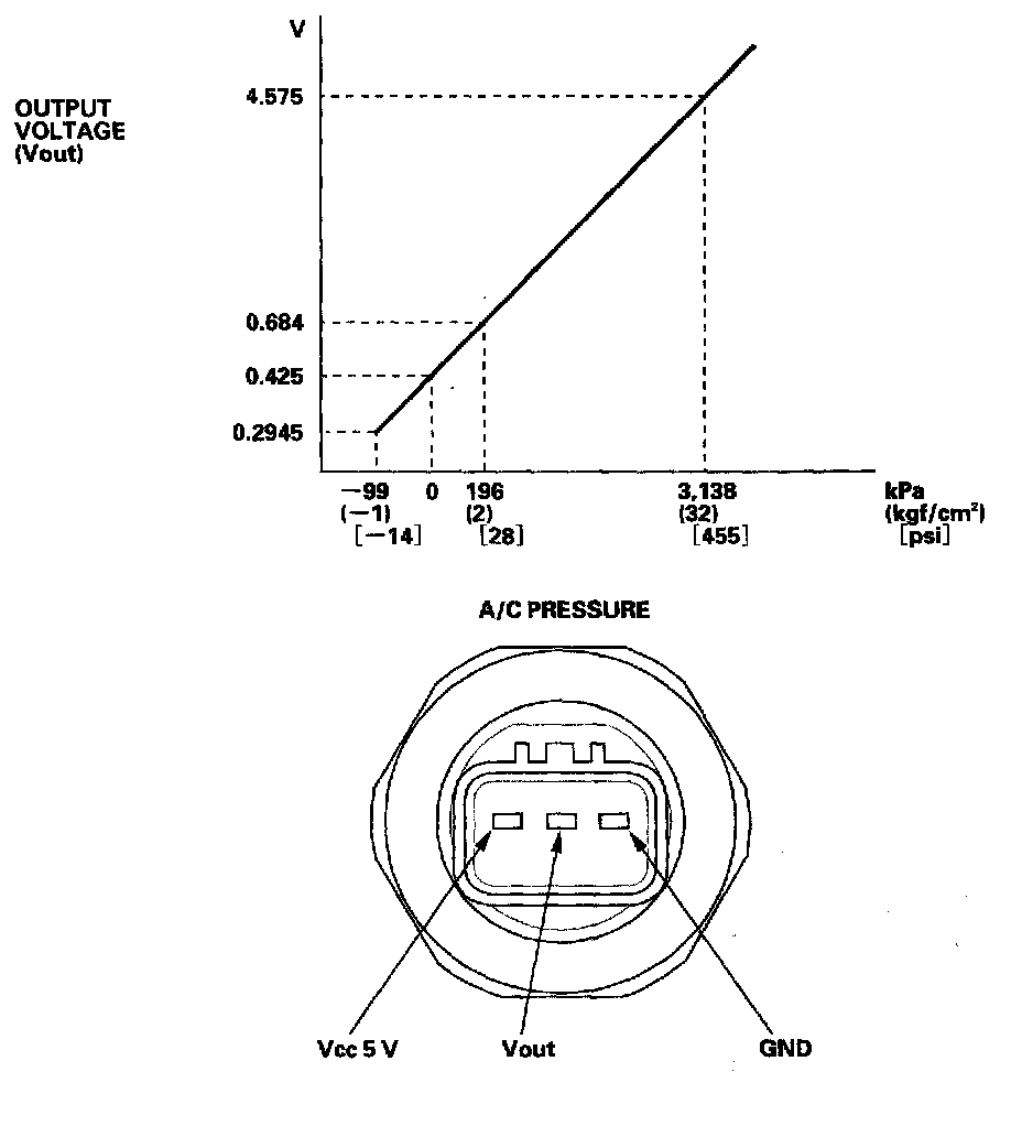 The A/C pressure sensor converts A/C pressure into electrical signals to the PCM.