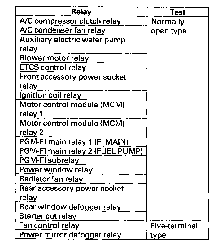 Power Relay TestUse this chart to identify the type of relay, then do the test listed for it.
