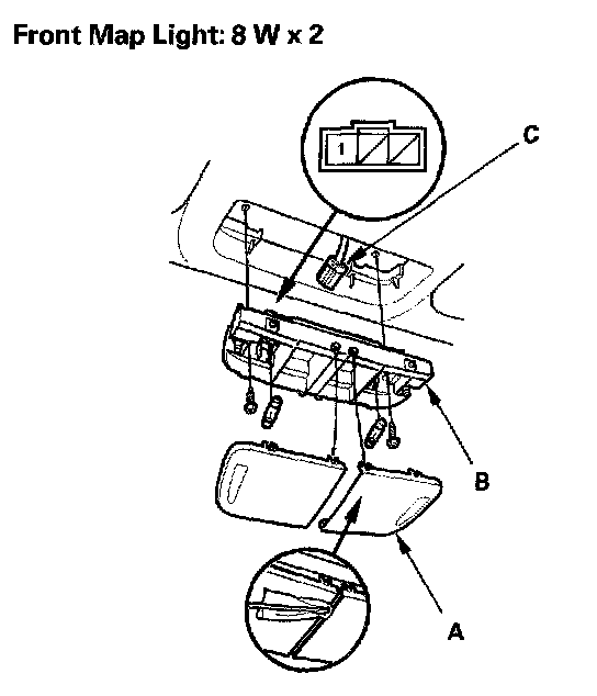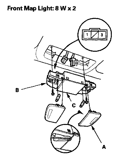 4. Disconnect the 3P connector (C) from the map lights.