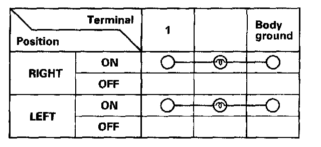5. Check for continuity between the terminals in each switch position according to the table.