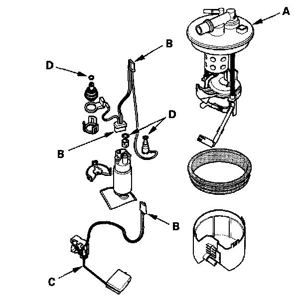 - When installing the fuel gauge sending unit (C), make sure the connection is secure and the connector is firmly locked into place. Be careful not to bend or twist it excessively.