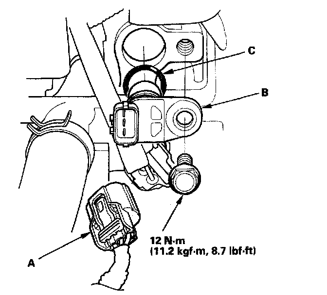Install the sensor in the reverse order of removal with a new O-ring (C).