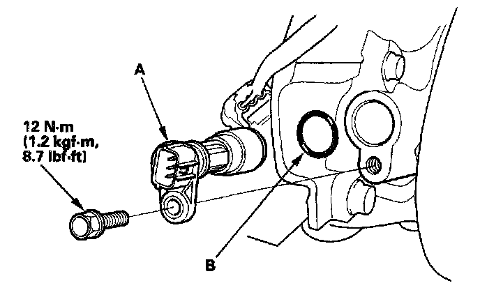 Install the sensor in the reverse order of removal with a new O-ring (B).