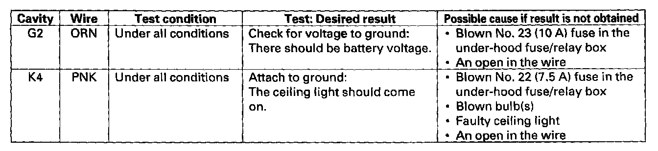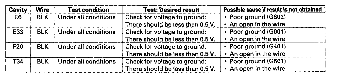 6. Reconnect the connectors to the under-dash fuse/relay box, and make these input tests at the connectors.