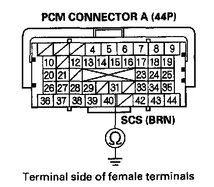 7. Check for continuity between PCM connector terminal A31 and body ground.