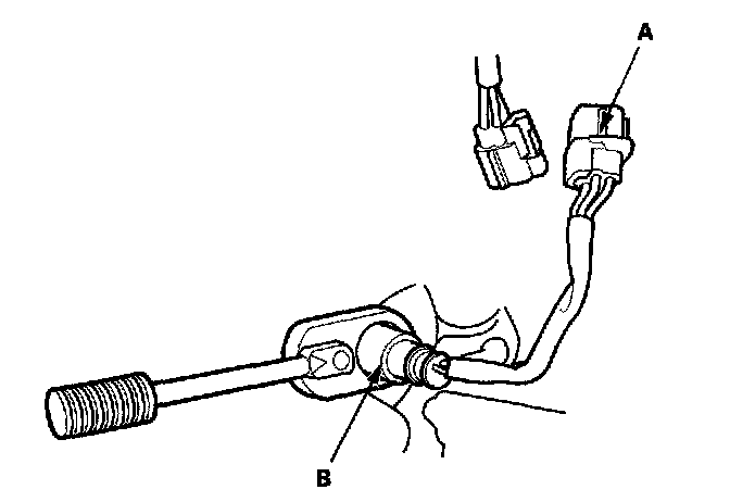 1. Disconnect the secondary HO2S 4P connector (A), then remove the secondary HO2S (B).