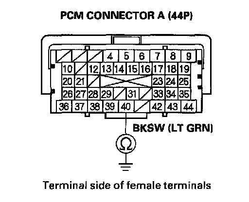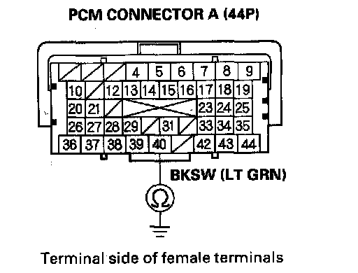 8. Check for continuity between PCM connector terminal A40 and body ground.