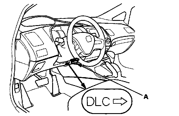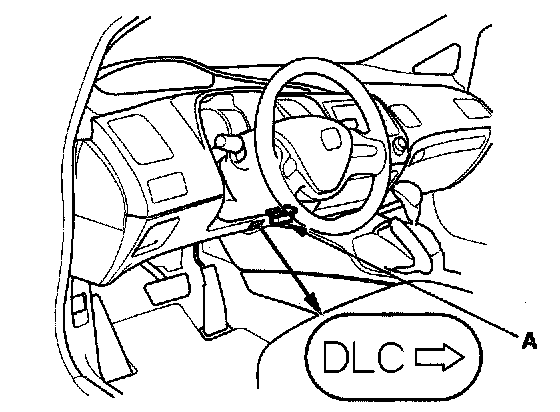 2. Connect the HDS to the data link connector (DLC) (A) located under the driver's side of the dashboard.