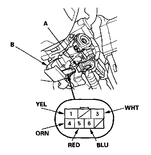 4. Disconnect the 7P connector (A) from the ignition switch (B).