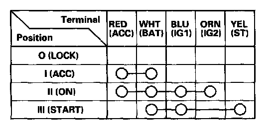 6. If the continuity checks do not agree with the table, replace the ignition switch.
