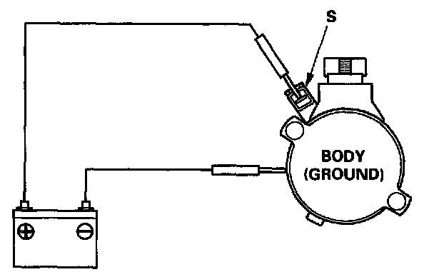 2. Make the connections as shown using as heavy a wire as possible (preferably equivalent to the wire used for the vehicle). To avoid damaging the starter, never leave the battery connected for more than 5 seconds.