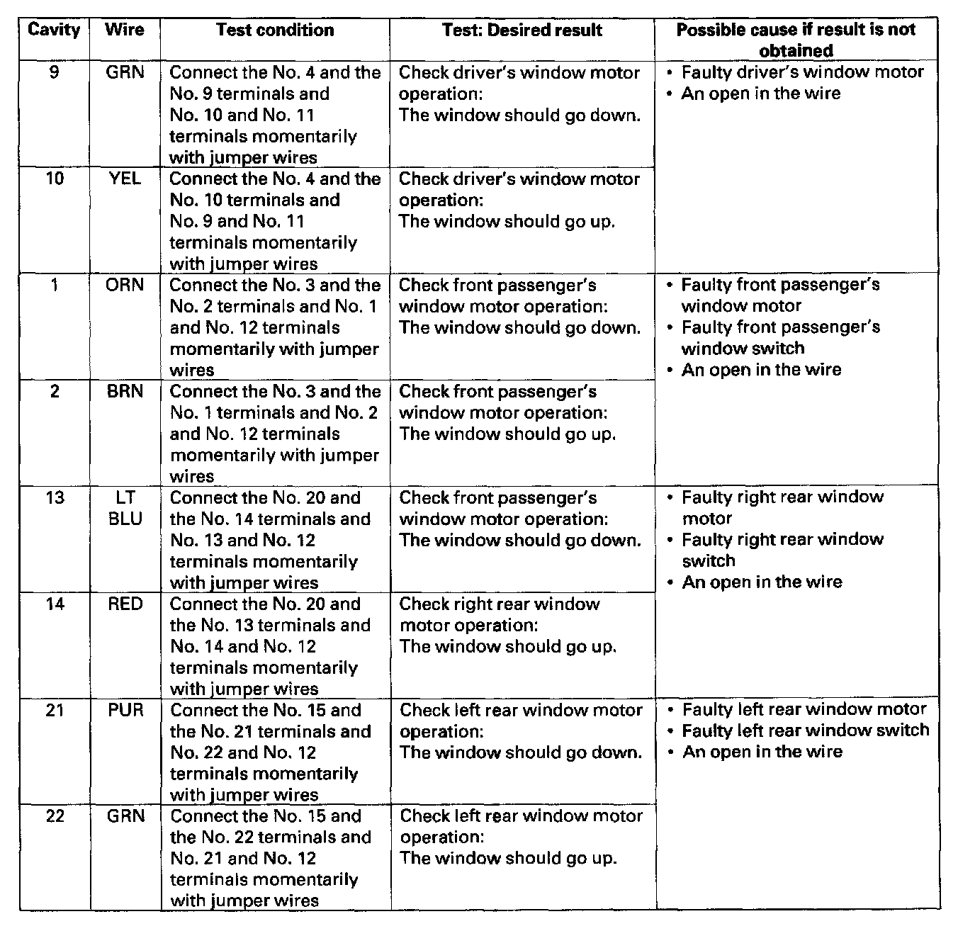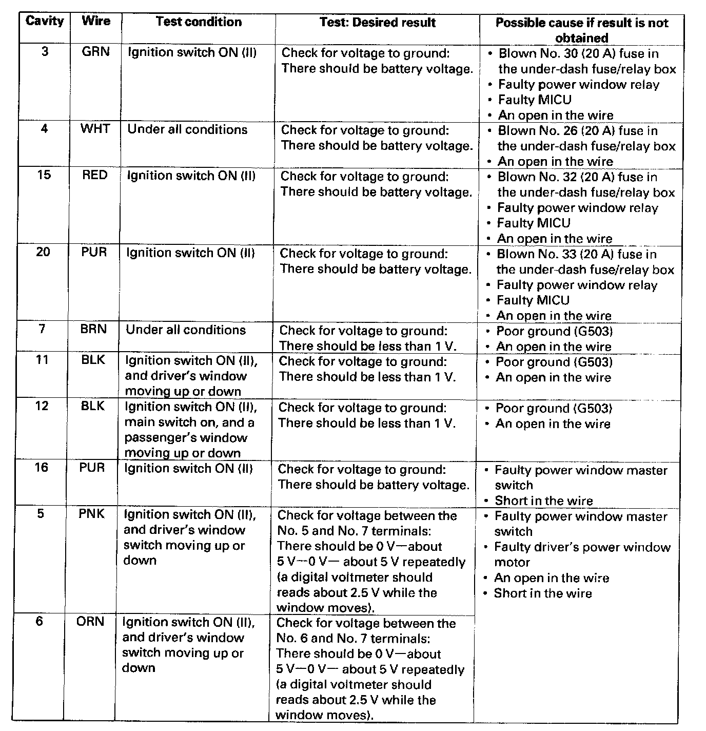 Master Switch Input TestNOTE: The power window control unit is built into the power window master switch, and it only controls the driver's window operations.