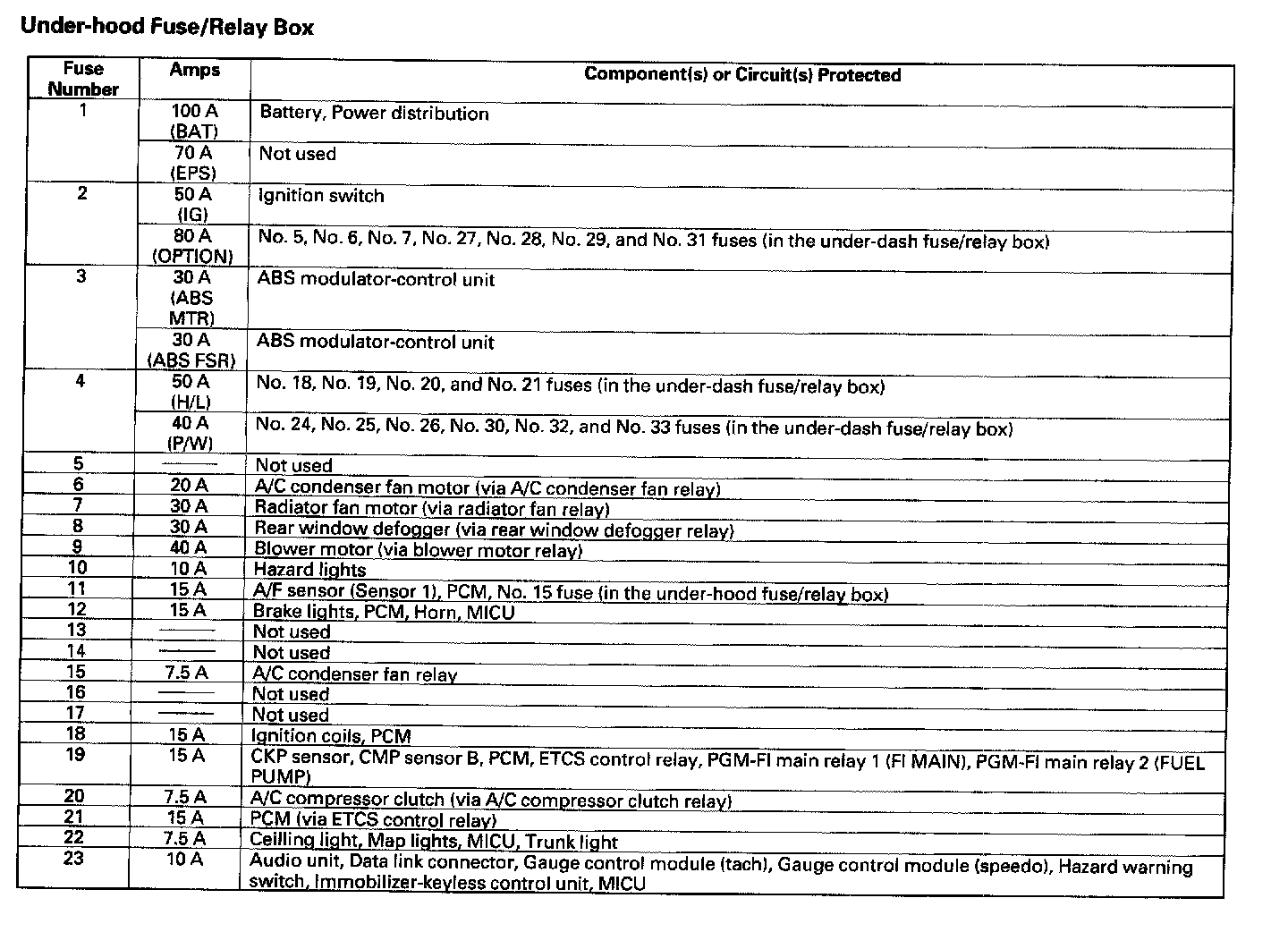 Under-hood Fuse/Relay Box: