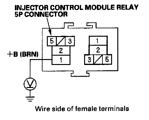 8. Measure voltage between injector control module relay 5P connector terminal No. 1 and body ground.