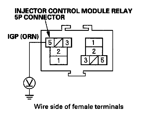 15. Measure voltage between injector control module relay 5P connector terminal No. 2 and body ground.
