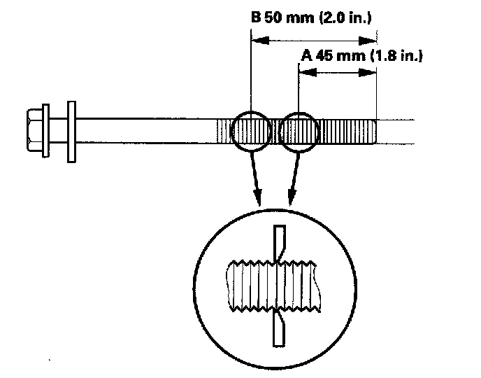 If either diameter is less than 10.6 mm (0.42 inch), replace the cylinder head bolt.
