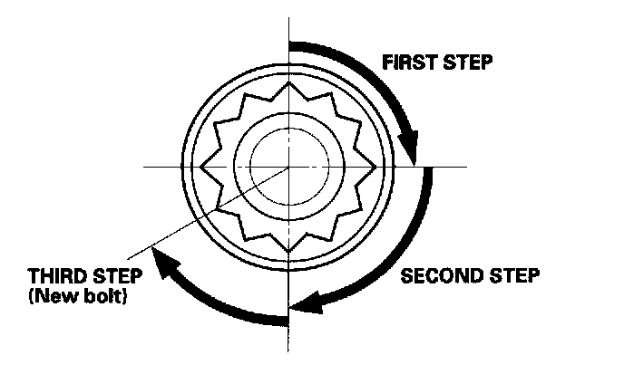 After torquing, tighten all cylinder head bolts in two steps (90° per step). If you are using a new cylinder head bolt, tighten the bolt an extra 60°.