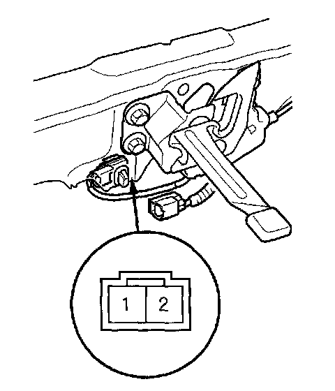 - There should be continuity between the No. 1 and No. 2 terminals when the hood is opened (latch released).