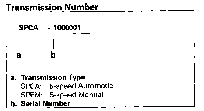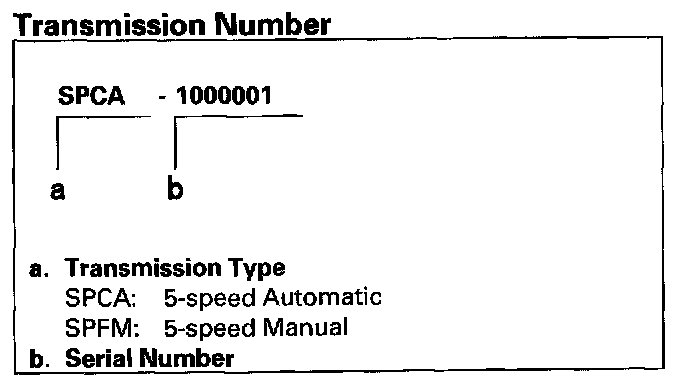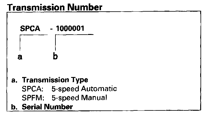Transmission Number, U.S. 2-door Model: