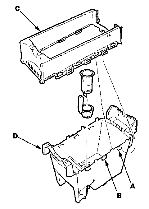 5. Release the hooks (A, B), then separate the console upper box (C) and console lower box (D).