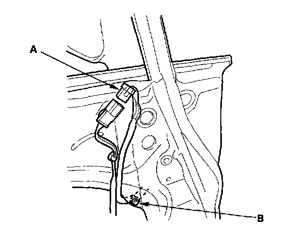 3. Disconnect the connector (A), and detach the harness clip (B).