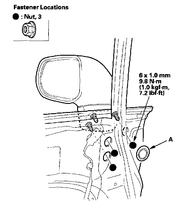 4. While holding the mirror, remove the nuts securing the mirror.