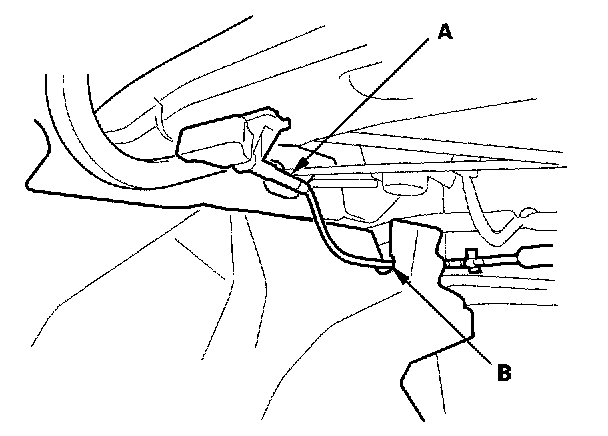3. 2-door: Remove the rear seat-back release cable (A) out through the slit (B) in the trim panel.