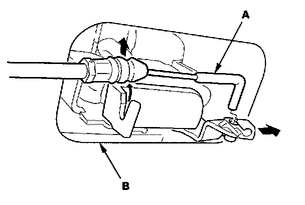 4. Disconnect the seat-back release cable (A) from the seat-back latch (B).