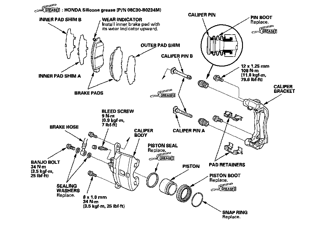 Front Brake Caliper OverhaulCAUTION: Frequent inhalation of brake pad dust, regardless of material composition, could be hazardous to your health.