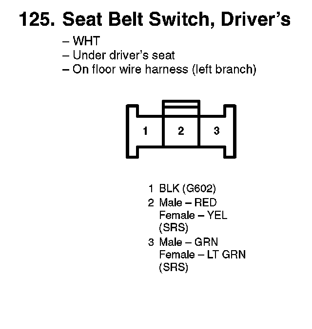 125. Seat Belt Switch, Driver's: