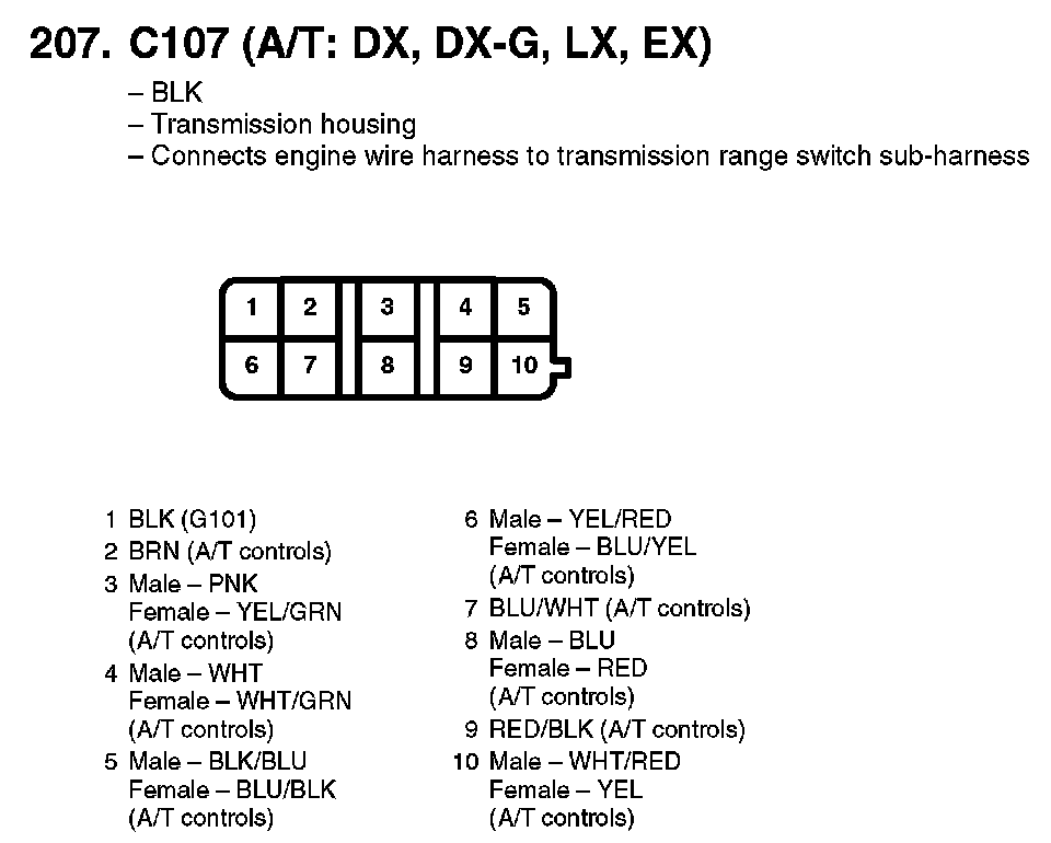 207. C107 (A/T: DX, DX-G, LX, EX):