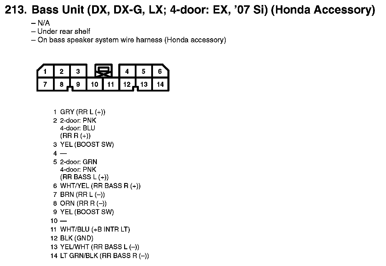 213. Bass Unit (DX, DX-G, LX; 4-door: EX, '07 Si) (Honda Accessory):