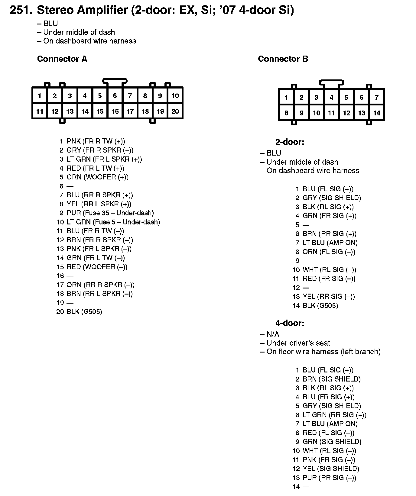 251. Stereo Amplifier (2-door: EX, Si; '07 4-door Si):
