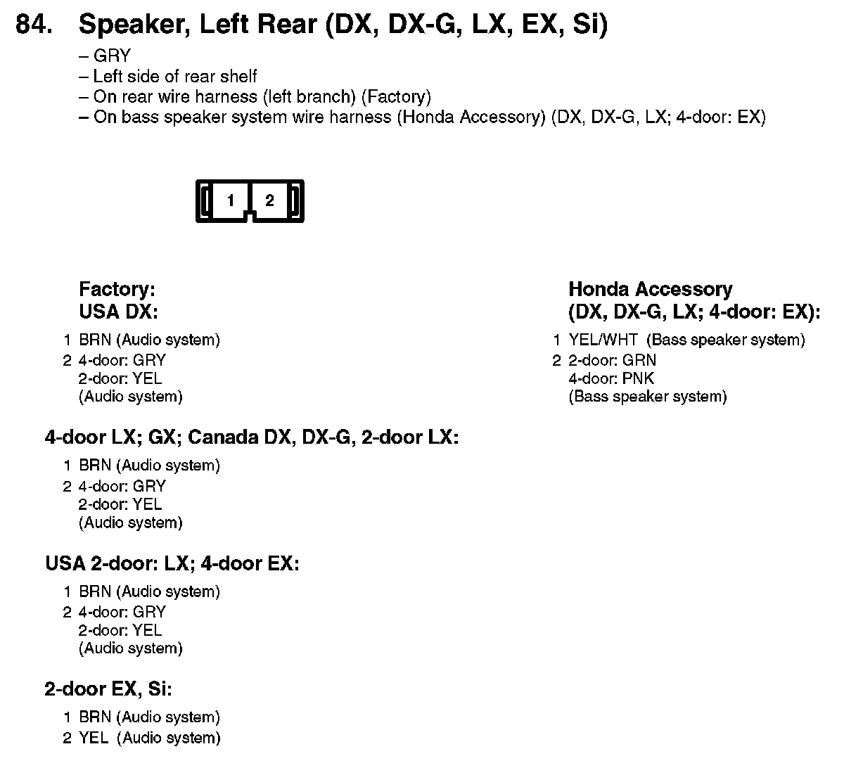 84. Speaker, Left Rear (DX, DX_G, LX, EX, Si):