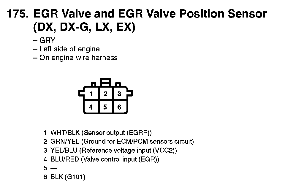 175. EGR Valve And EGR Valve Position Sensor (DX, DX-G, LX, EX):