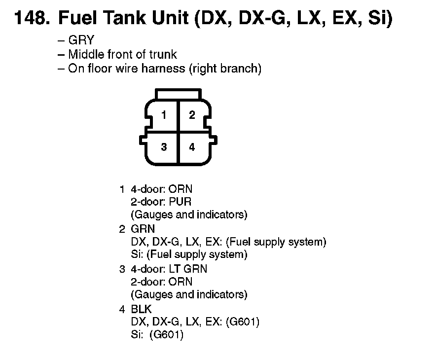 148. Fuel Tank Unit (DX, DX-G, LX, EX, Si):