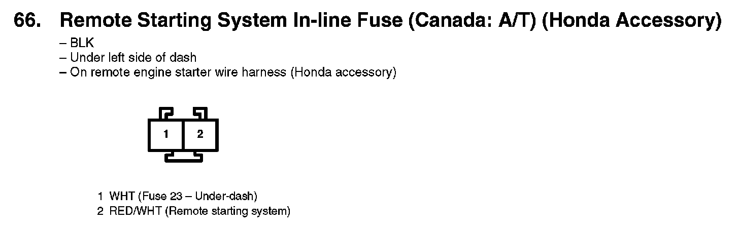 66. Remote Starting System In-line Fuse (Canada: A/T) (Honda Accessory):
