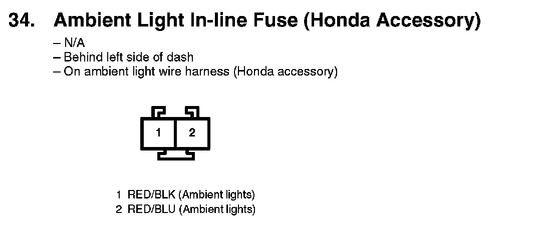 34. Ambient Light In-line Fuse (Honda Accessory):