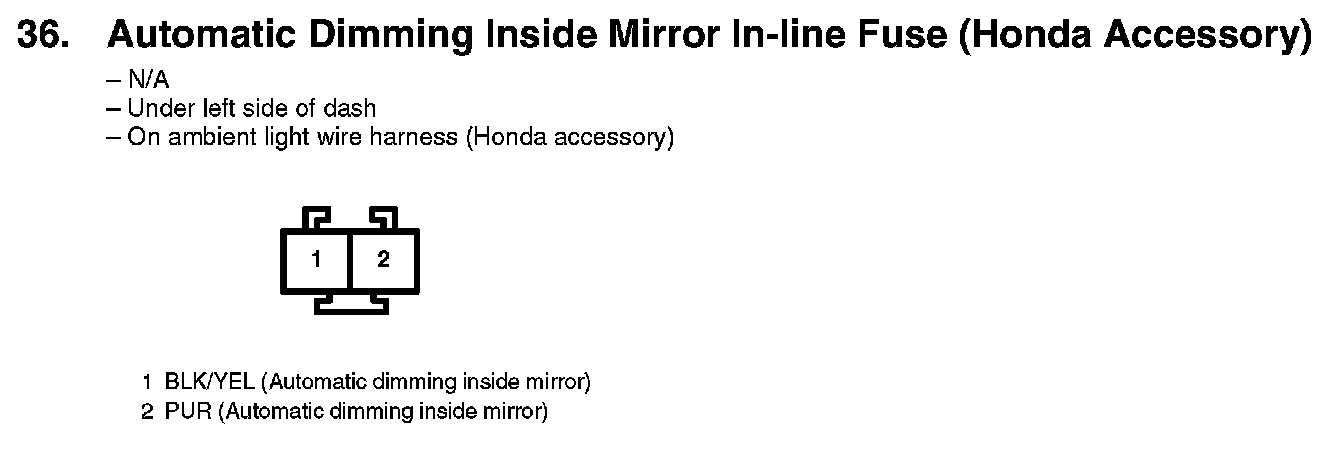 36. Automatic Dimming Inside Mirror In-line Fuse (Honda Accessory):