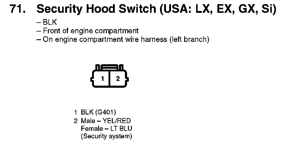 71. Security Hood Switch (USA: LX, EX, GX, Si):